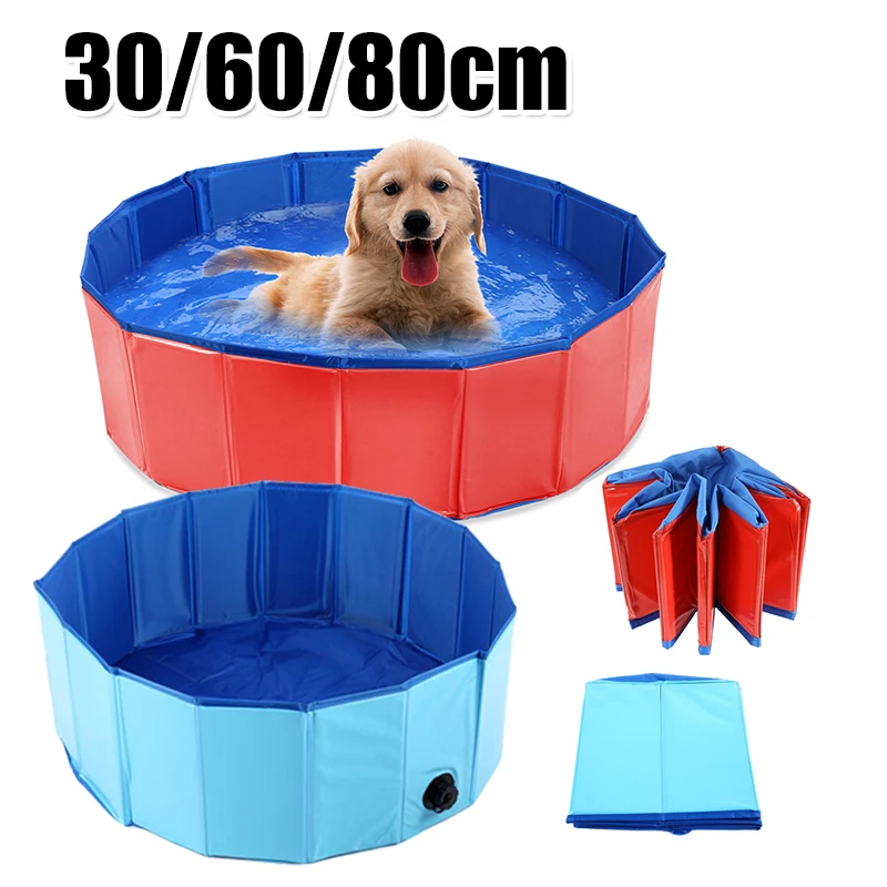 - Piscina plegable de PVC para mascotas y gatos, minipiscina de arena con relleno de bolas, tanque de agua, 30/60/80cm