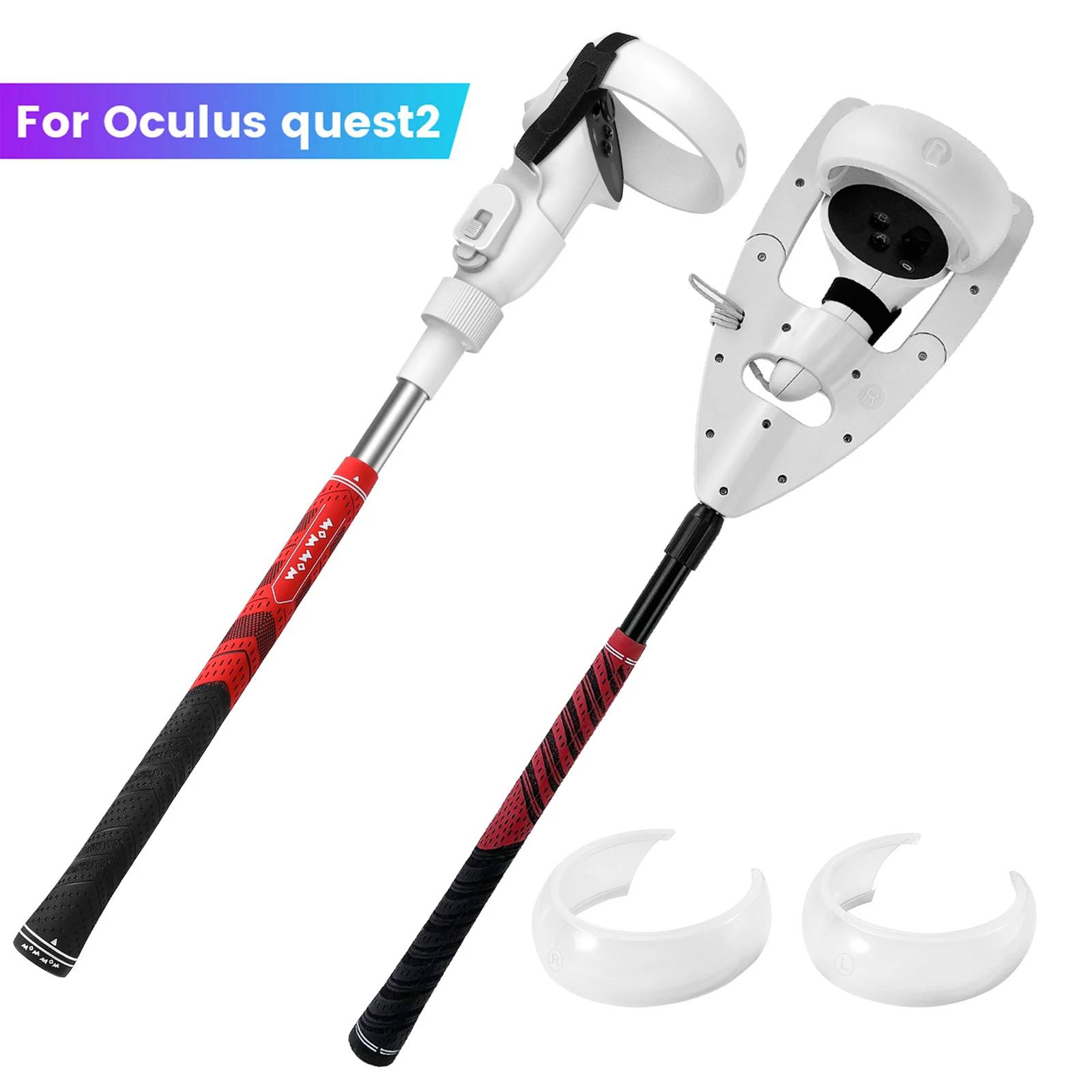 - Accesorio de mango de palo de Golf VR para Oculus Quest 2, accesorios de mango adaptador de Club de Golf VR con 2 cubiertas de controlador