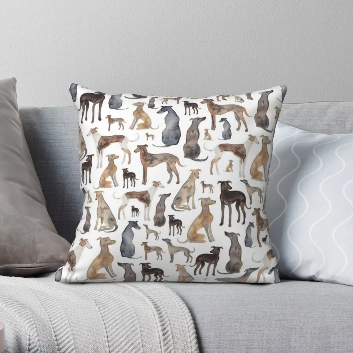 - Funda de almohada cuadrada de terciopelo con cremallera para cama, cojín de poliéster y lino con estampado de Greyhounds, Wippets y Lurcher