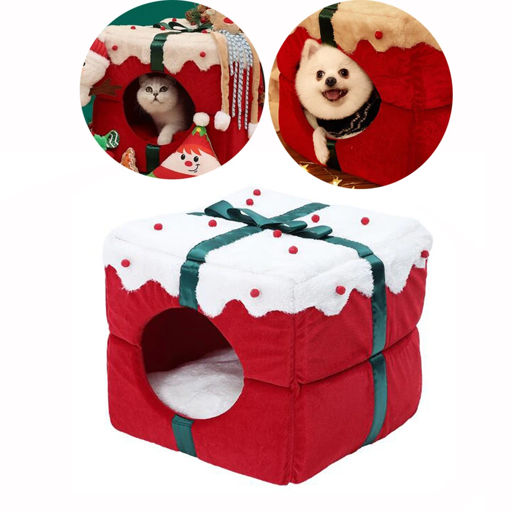 - Tienda de nido de perro para mascotas, cama cálida x-mas, calabaza, cachorro, gato, perrera, suministros para mascotas, Otoño e Invierno
