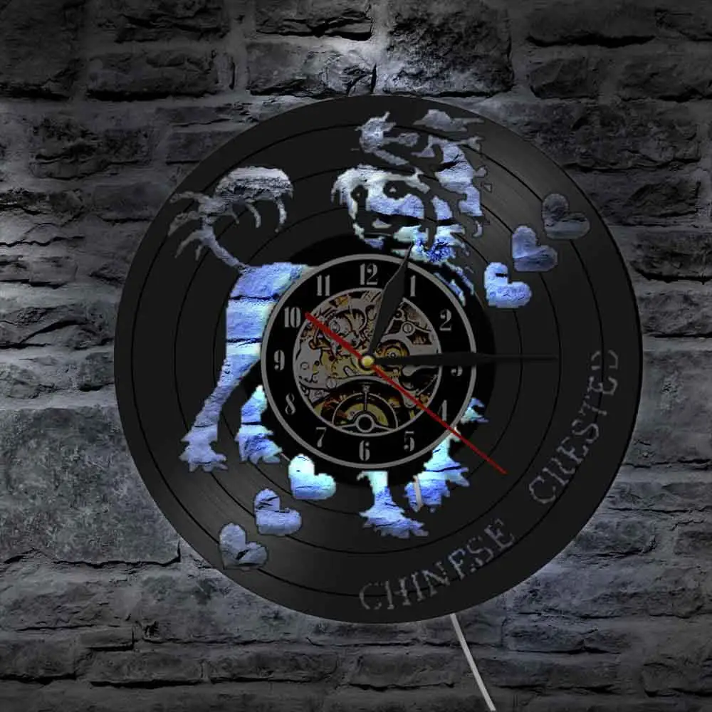 - Reloj de pared chino con registro de vinilo para mascotas, artículo de aseo para cachorros, luz nocturna, regalo para amantes de los perros, decoración para clínica de mascotas