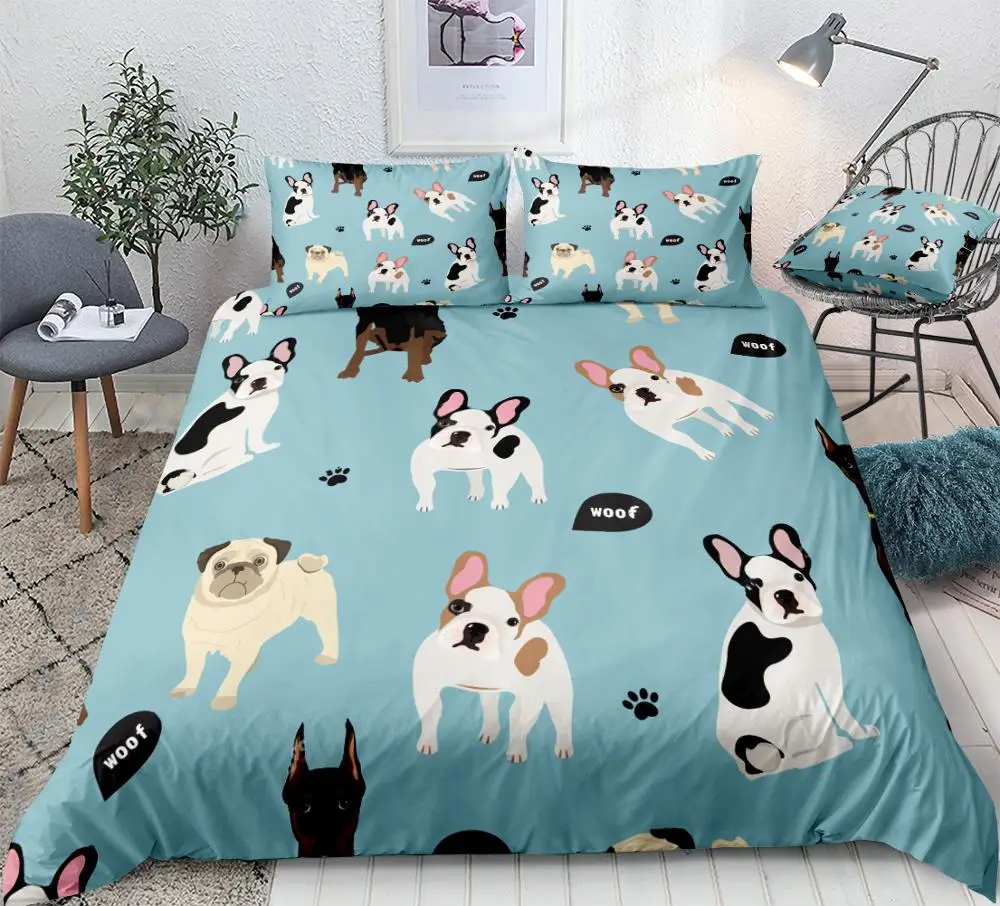 - Juego de funda nórdica Doberman para niños y adolescentes, edredón con estampado de perros, Bulldog Francés, Pug, Textiles para el hogar, 3 piezas, azul, envío directo