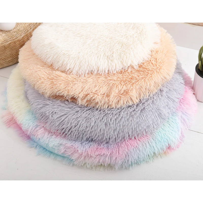 - Cojín para mascotas, cama redonda de felpa larga y suave para perros y gatos pequeños, medianos y grandes, suministros para dormir