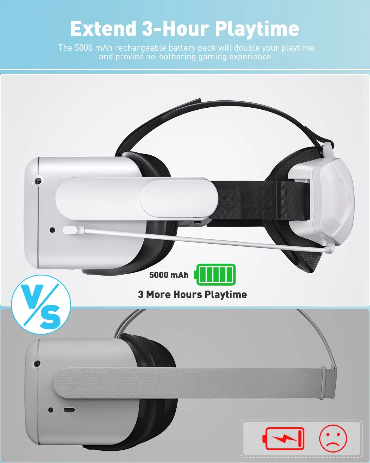 - Correa de cabeza ajustable para Oculus Quest 2, paquete de batería para auriculares VR, Correa Halo, Banco de energía para Oculus Quest 2 VR, accesorios