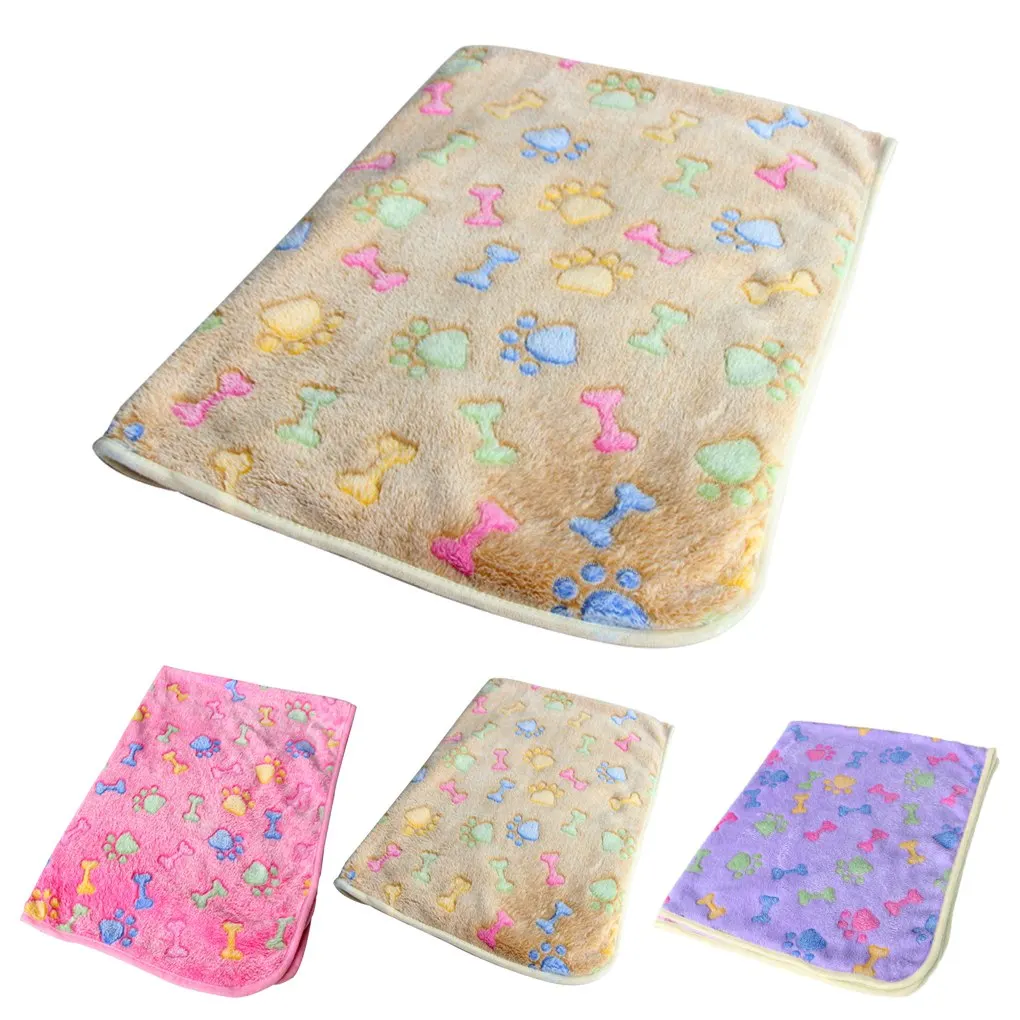 - Alfombra cálida con estampado de hueso para mascota, manta polar para gato, perro y cachorro, cojín para cama, color rosa y morado
