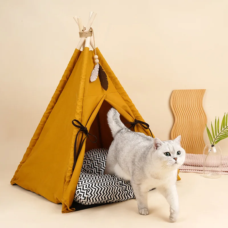 - Tienda de campaña para mascotas, cama de lona amarilla para perros y gatos, tipi con cojín, 30 pulgadas de alto, s hasta 15lbs