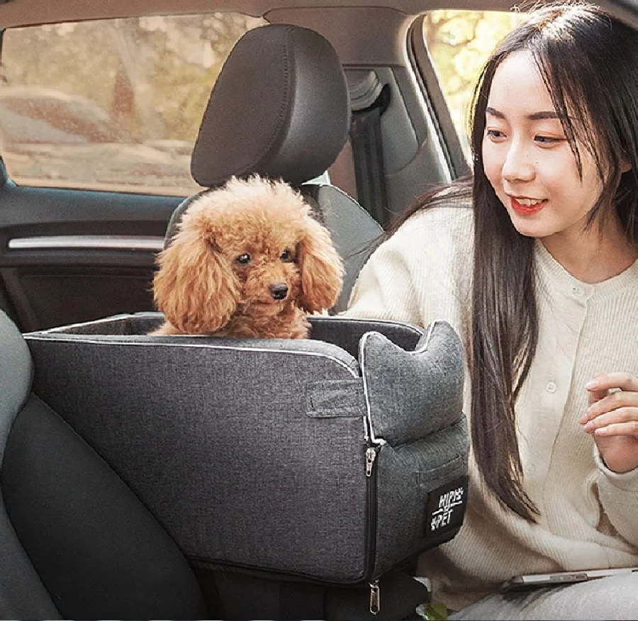 - Asiento de coche portátil para perros y gatos, caja de seguridad con reposabrazos, Control Central, antideslizante, para perros pequeños