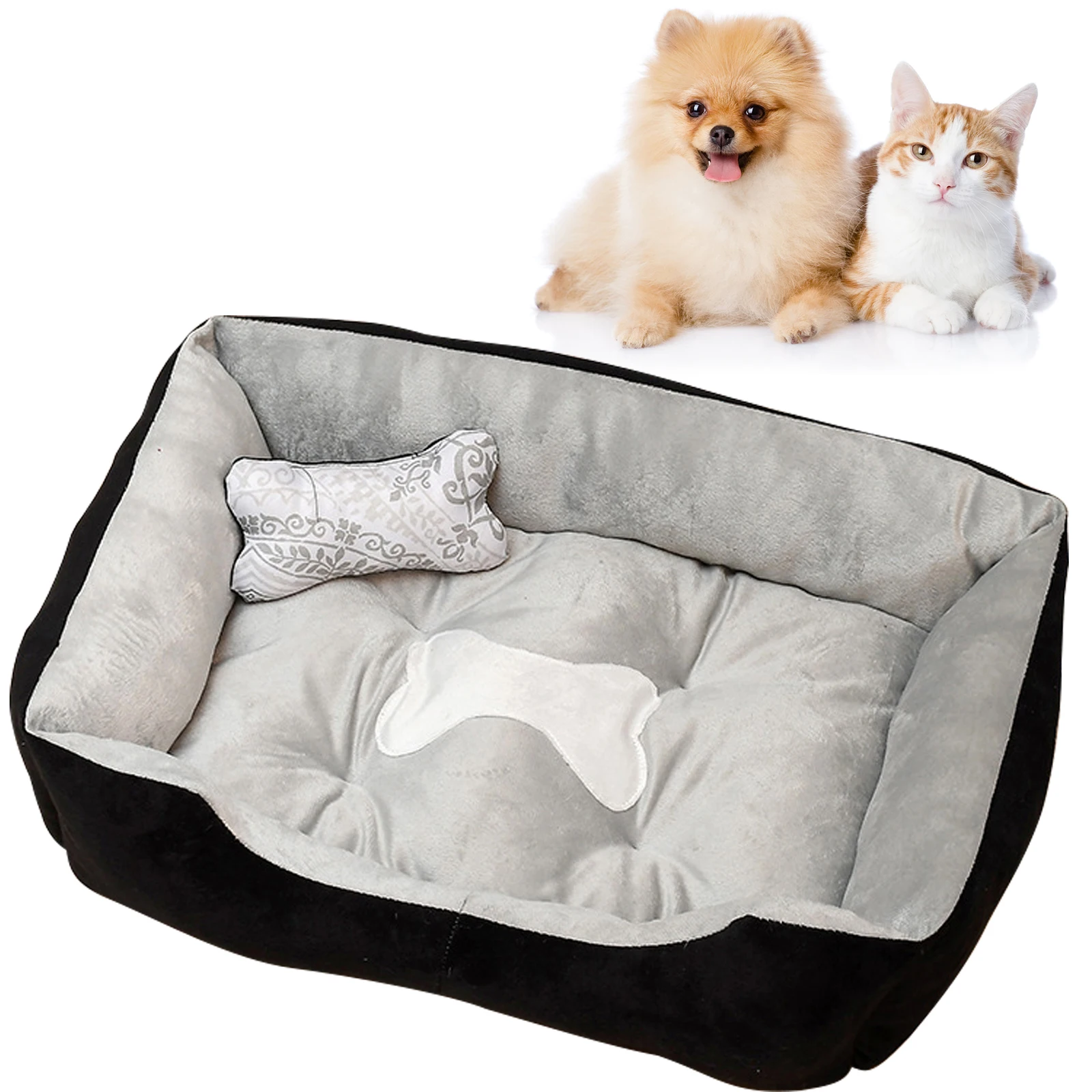 - Cesta para perro, cama para perro, cojín y sofá de espuma viscoelástica con funda lavable extraíble y saco de dormir de juguete de hueso para perro 80cm * 60cm * 15cm