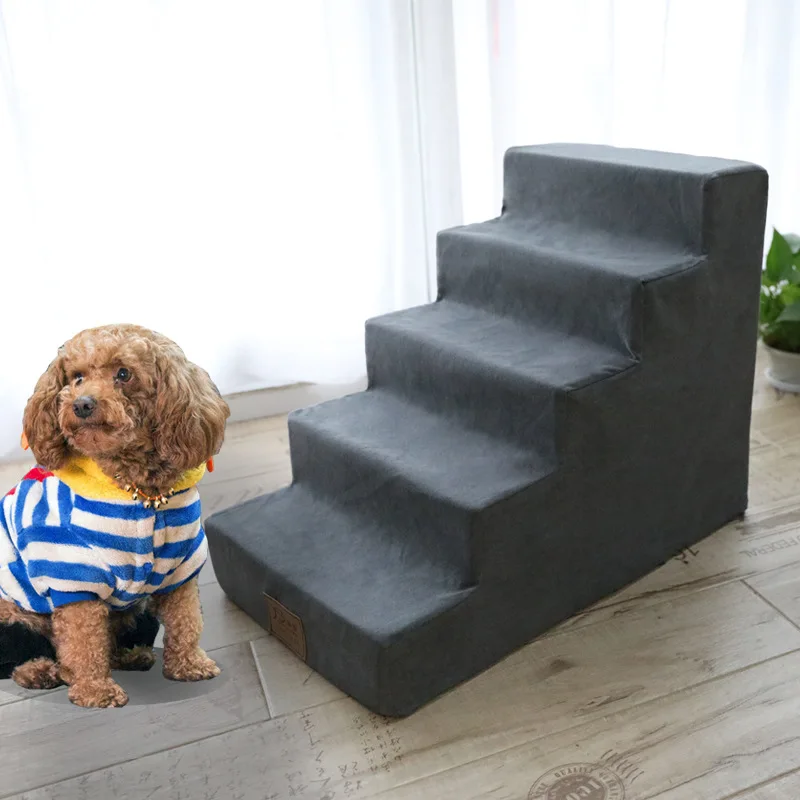 - Escalera de esponja con cubierta para mascotas, escalones de 5 escalones, 65x50x38 cm, para perros, escaleras portátiles para interiores, antideslizantes, sofá cama extraíble, rampa de seguridad