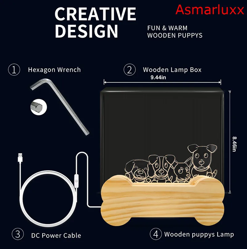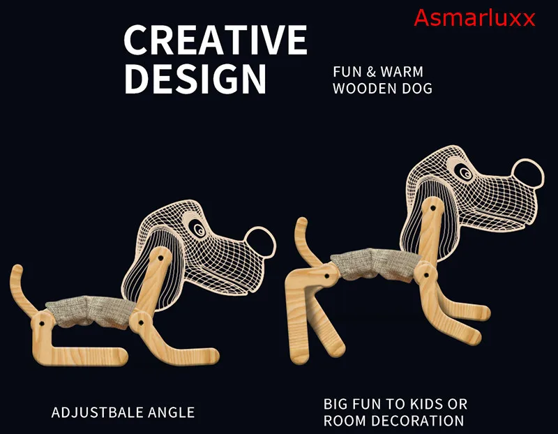 - Hande Made-Lámpara plegable 3D con diseño de perro, pantalla de Panel acrílico con Base de madera, Flexible, para decoración de escritorio, regalo de cumpleaños