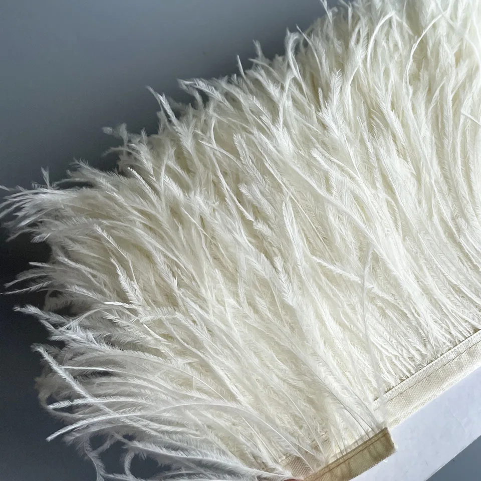 - Cinta embellecedora de plumas de avestruz, accesorio de costura con varias flecos reales, para manualidades, vestido y falda, 15-20CM, 10M