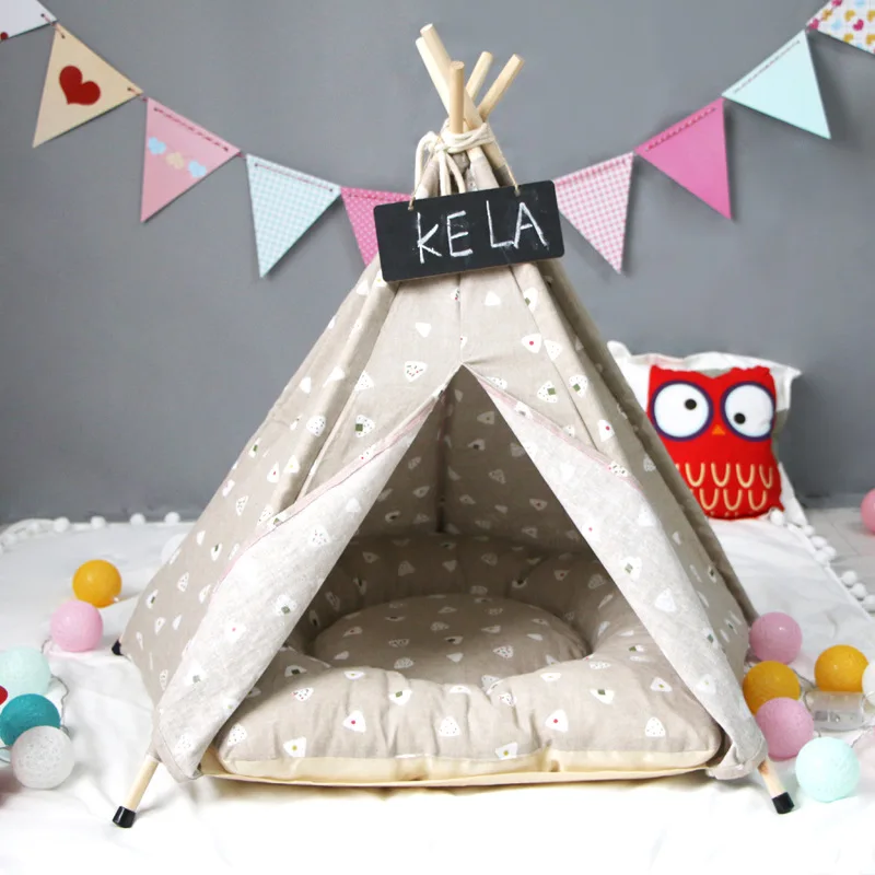 - Tienda de campaña portátil para mascotas, cama gris creativa con cojín grueso, para perros, cachorros, animales pequeños