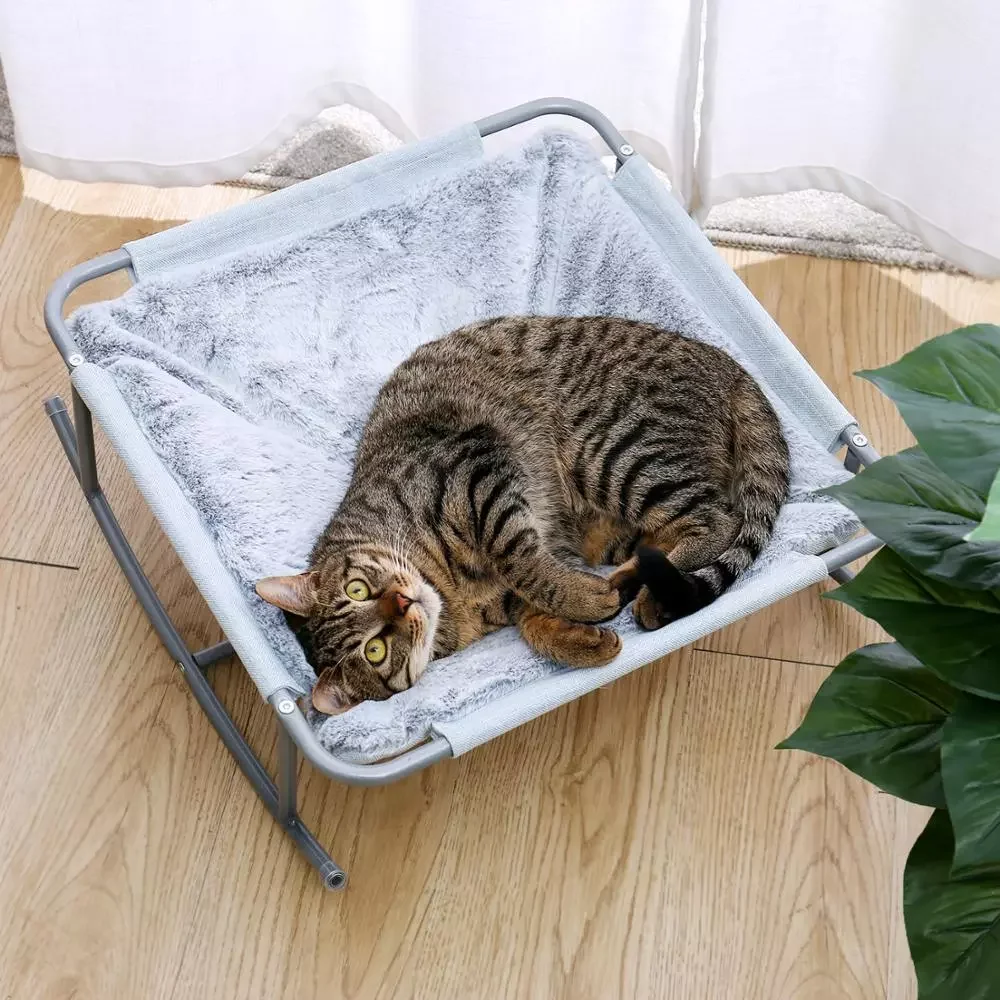 - Cama de felpa suave para gato, hamaca desmontable con bola colgante, para perros pequeños, gris